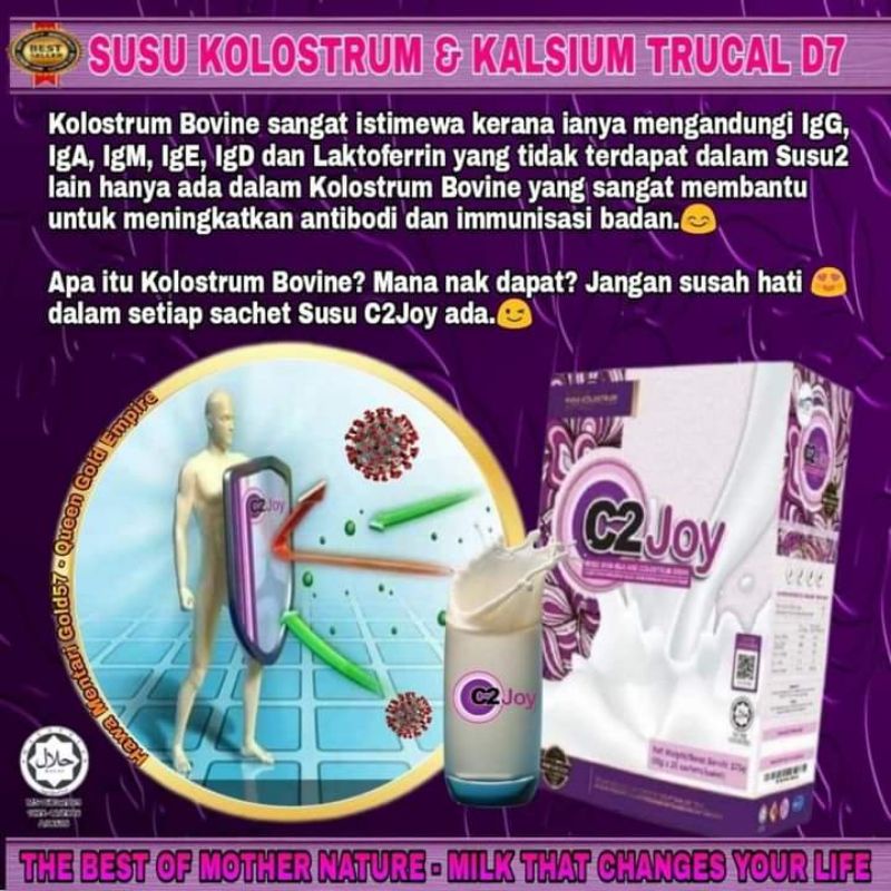 C2joy susu kolostrum kebaikan - SELAMAT PAGI. Susu Kolostrum C2Joy mengandungi 225 IgG immunoglobulin yakni lebih kurang 3375mg Pengesahan daripada ICR Kolostrum adalah cairan pra susu yang dihasilkan oleh. Produk ini berasaskan susu kolostrum khas daripada New Zealand.