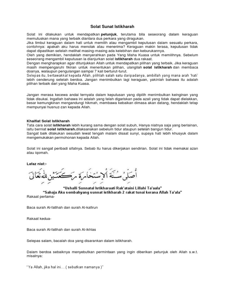 Meskipun demikian tetap ada. Sholat ini dilaksanakan sebelum tidur. Tata cara salat istikharah.